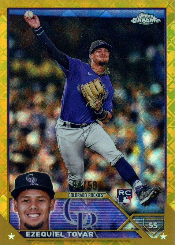 The Ezequiel Tovar 2023 Topps Chrome Logofractor Edition #106 Gold /50 Rookie card in Raw condition has not changed in price in the last 30 days and was last sold for $70.00 .
