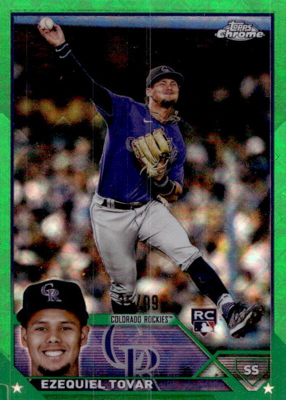 2023 Topps Chrome Logofractor EZEQUIEL TOVAR RC green refractor #36/99! Rockies