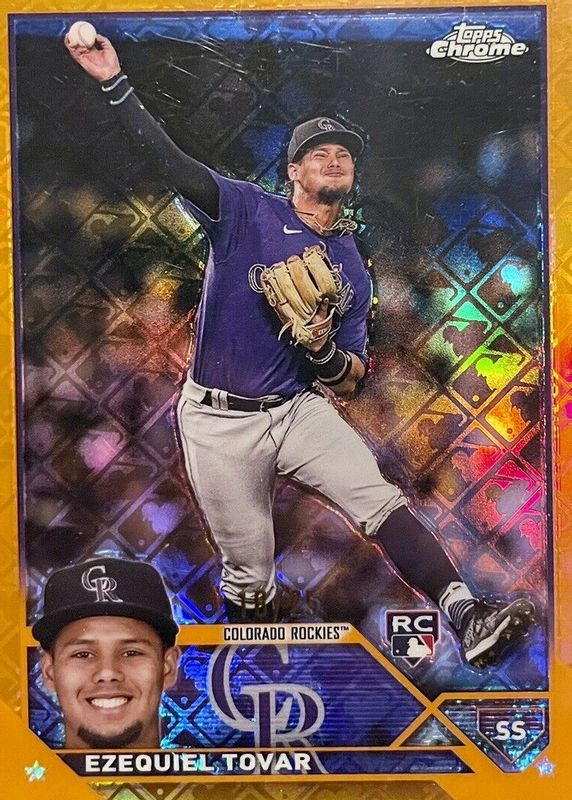 2023 Topps Chrome Ezequiel Tovar Orange Logofractor RC /25 #106 Rockies