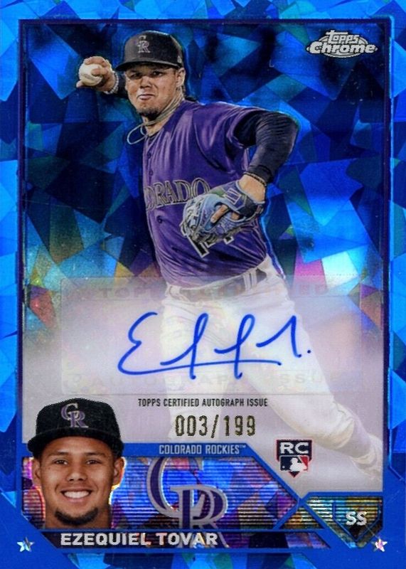 EZEQUIEL TOVAR #/199 2023 TOPPS CHROME UPDATE SAPPHIRE AUTO RC ROCKIES