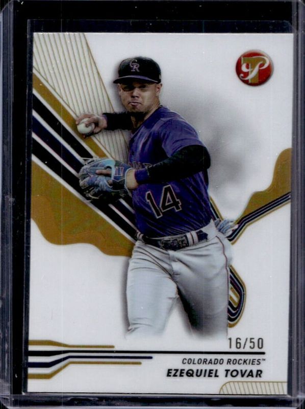 The Ezequiel Tovar 2024 Topps Pristine #12 Gold Refractor /50 card is 1 of 24 Ezequiel Tovar's card variations in the 2024 Topps Pristine set being tracked by Sports Card Investor, including Base, Pristine Refractor, Refractor, Green Refractor /150, and Pristine Purple Refractor /99.
