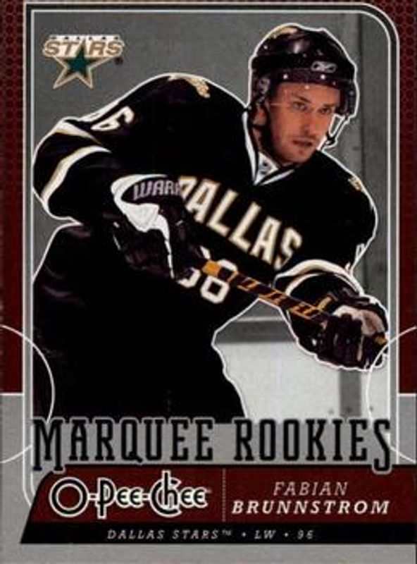 The Fabian Brunnstrom 2008 O-Pee-Chee #761 Base Rookie card is 1 of 10 Fabian Brunnstrom's card variations in the 2008 O-Pee-Chee set being tracked by Sports Card Investor, including 1979 Retro, 1979 Retro Blank Back, Gold, Metal, and Metal X.