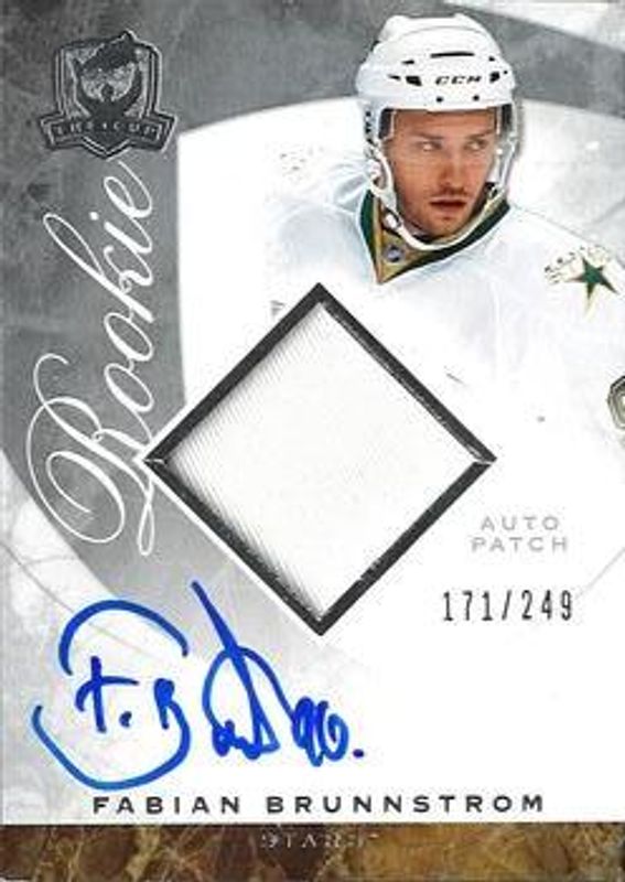 The Fabian Brunnstrom 2008 Upper Deck The Cup #96 Base /249 Rookie card is 1 of 69 Fabian Brunnstrom's card variations in the 2008 Upper Deck The Cup set being tracked by Sports Card Investor, including Artist Proof Foundations Patches, Gold Rainbow /67, Gold /25, Black /1, and Printing Plates OPC Premier Black.