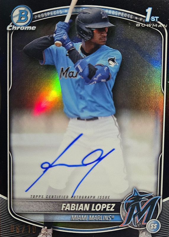Fabian Lopez 2025 Bowman #CPA-FL Chrome Prospect Auto - Black Refractor /10 (1st) RAW Price Guide