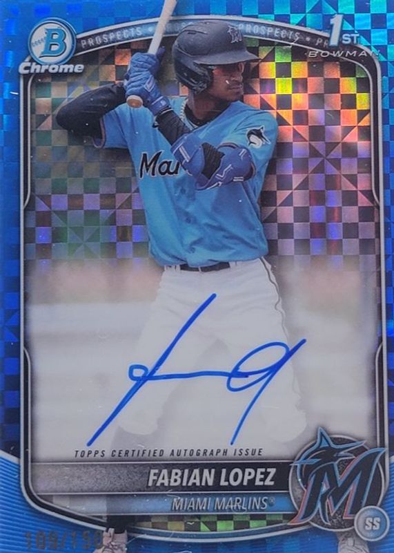 2025 Bowman Chrome 1st Prospect Auto Fabian Lopez #CPA-FL Blue X-Fractor /150