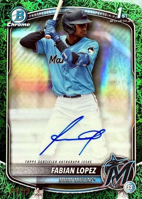 2025 Bowman Chrome Prospects Fabian Lopez Green Grass Auto /99 1st Bowman