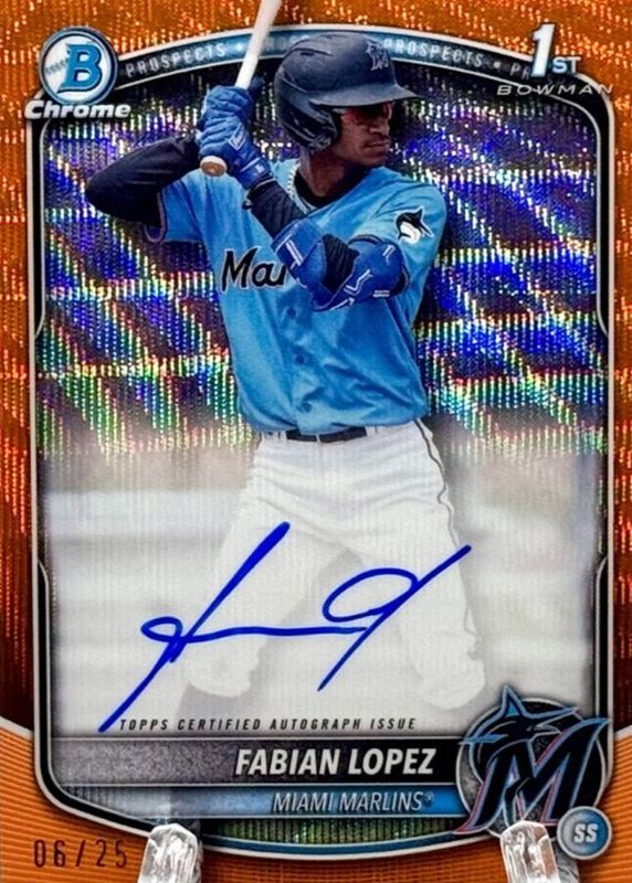2025 Bowman Fabian Lopez Chrome Auto Orange Wave Refractor 1st Marlins #25/25
