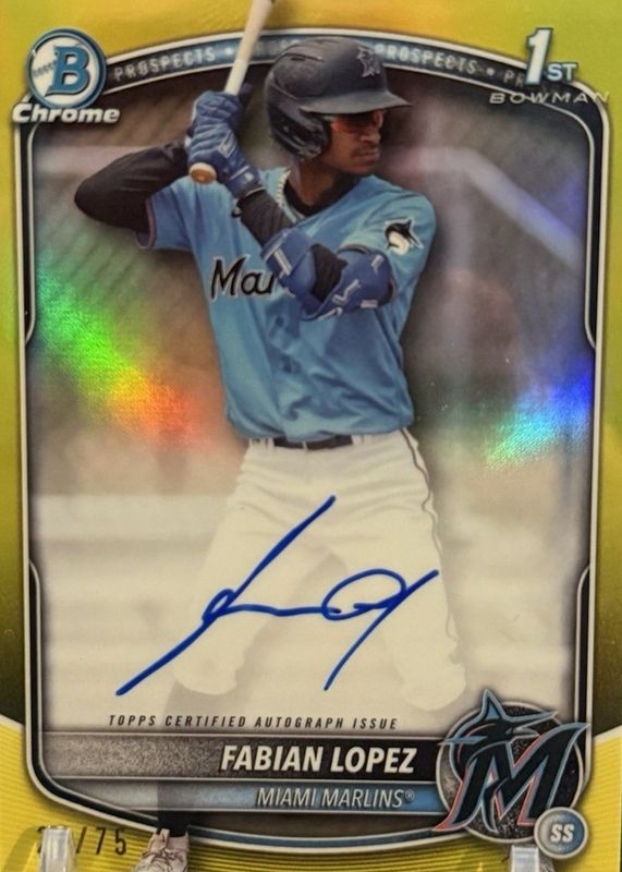 2025 Bowman Chrome Fabian Lopez 1st Prospects Auto Yellow 10/75 Marlins