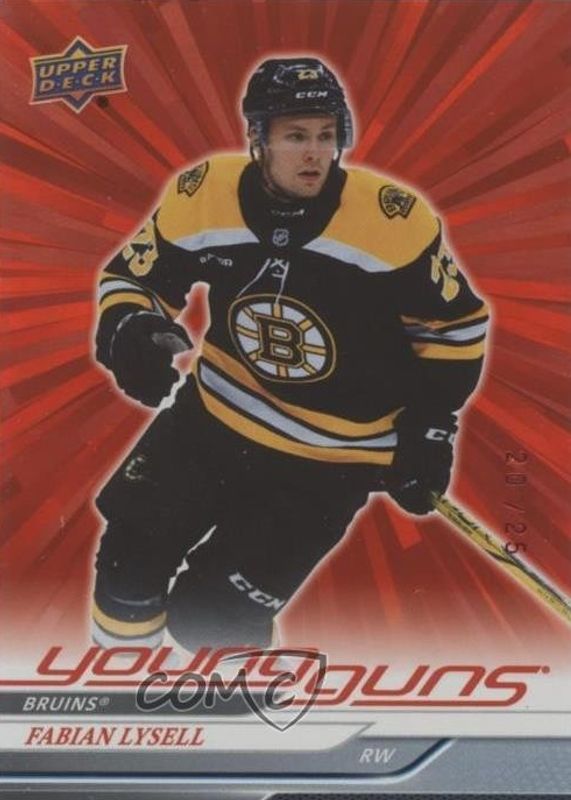 The Fabian Lysell 2024 Upper Deck Extended Series #721 Young Guns - Outburst Red /25 Rookie card in Raw condition has not changed in price in the last 30 days and was last sold for $96.50 .