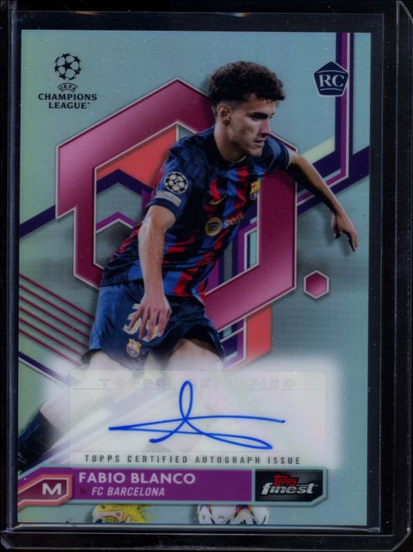 The Fabio Blanco 2022 Topps Finest UEFA Club Competitions #A-FB Autographs Rookie card is 1 of 10 Fabio Blanco's card variations in the 2022 Topps Finest UEFA Club Competitions set being tracked by Sports Card Investor, including Autographs - Blue Refractor /150, Autographs - Neon Green Refractor /99, Autographs - Neon Green Wave Refractor /99, Autographs - Gold Refractor /50, and Autographs - Orange Refractor /25.
