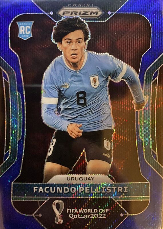 The Facundo Pellistri 2022 Prizm World Cup #275 Blue Wave /199 Rookie card in Raw condition has not changed in price in the last 30 days and was last sold for $2.25 .