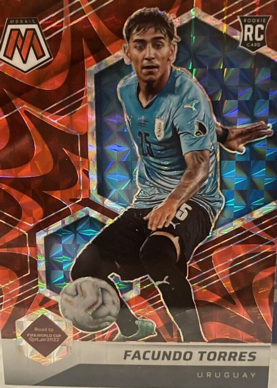 The Facundo Torres 2021 Mosaic Road to FIFA World Cup #118 Reactive Red Rookie card in Raw condition has not changed in price in the last 30 days and was last sold for $3.99 .
