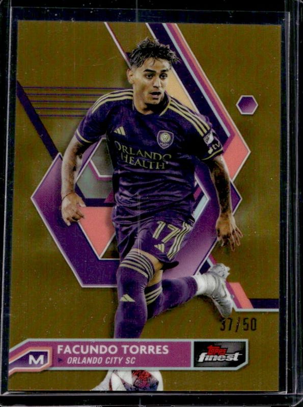 The Facundo Torres 2023 Topps Finest MLS #89 Gold Refractor /50 card is 1 of 41 Facundo Torres' card variations in the 2023 Topps Finest MLS set being tracked by Sports Card Investor, including Base, Refractor, Purple Refractor /250, Speckle Refractor /175, and Blue Refractor /150.