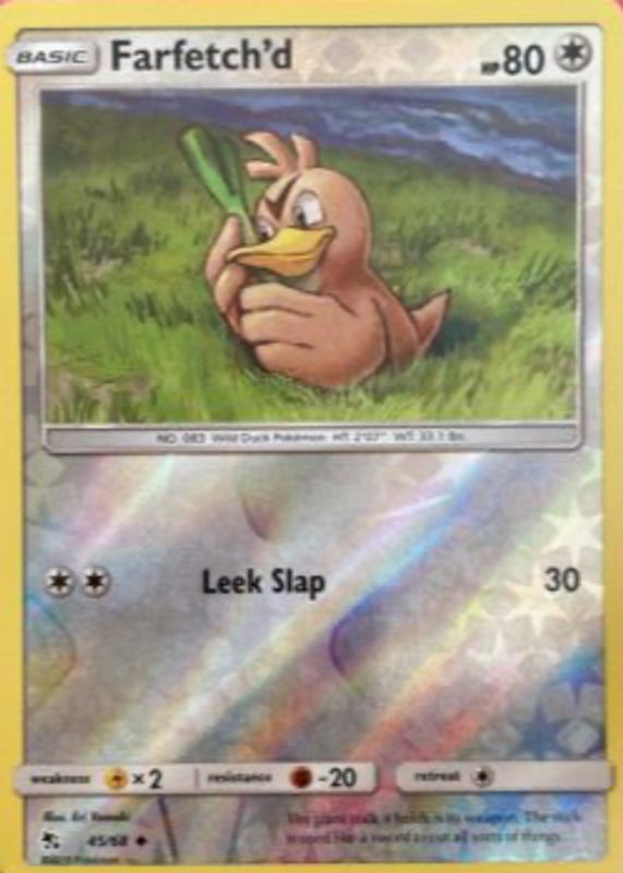Farfetch'd 2019 Sun & Moon: Hidden Fates #45/68 Reverse Holo RAW TCG (LIGHTLY PLAYED) Price Guide