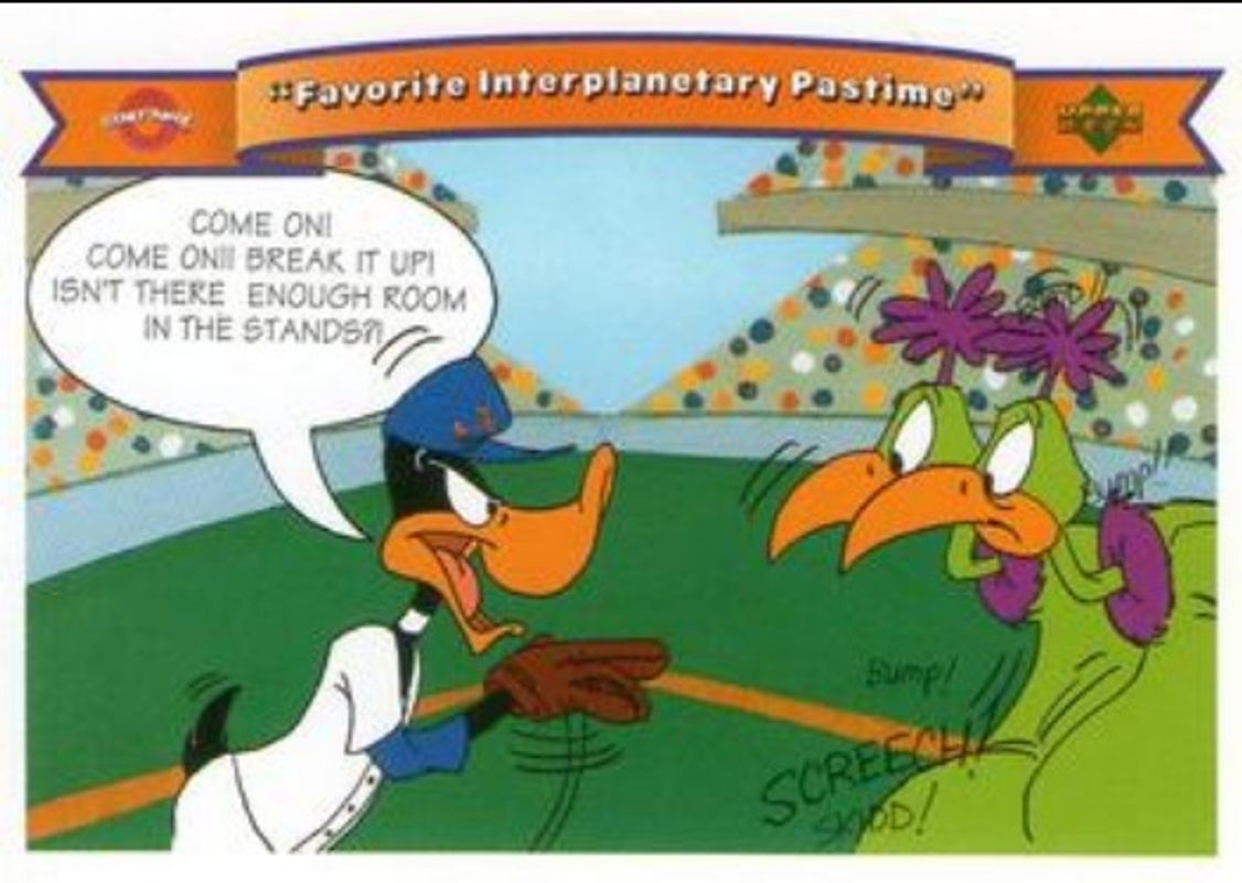 The Favorite Interplanetary Pastime 1991 Upper Deck Comic Ball 2 #10 Base card is 1 of 10 Favorite Interplanetary Pastime's card variations in the 1991 Upper Deck Comic Ball 2 set being tracked by Sports Card Investor, including #13 Base, #14 Base, #15 Base, #16 Base, and #18 Base.