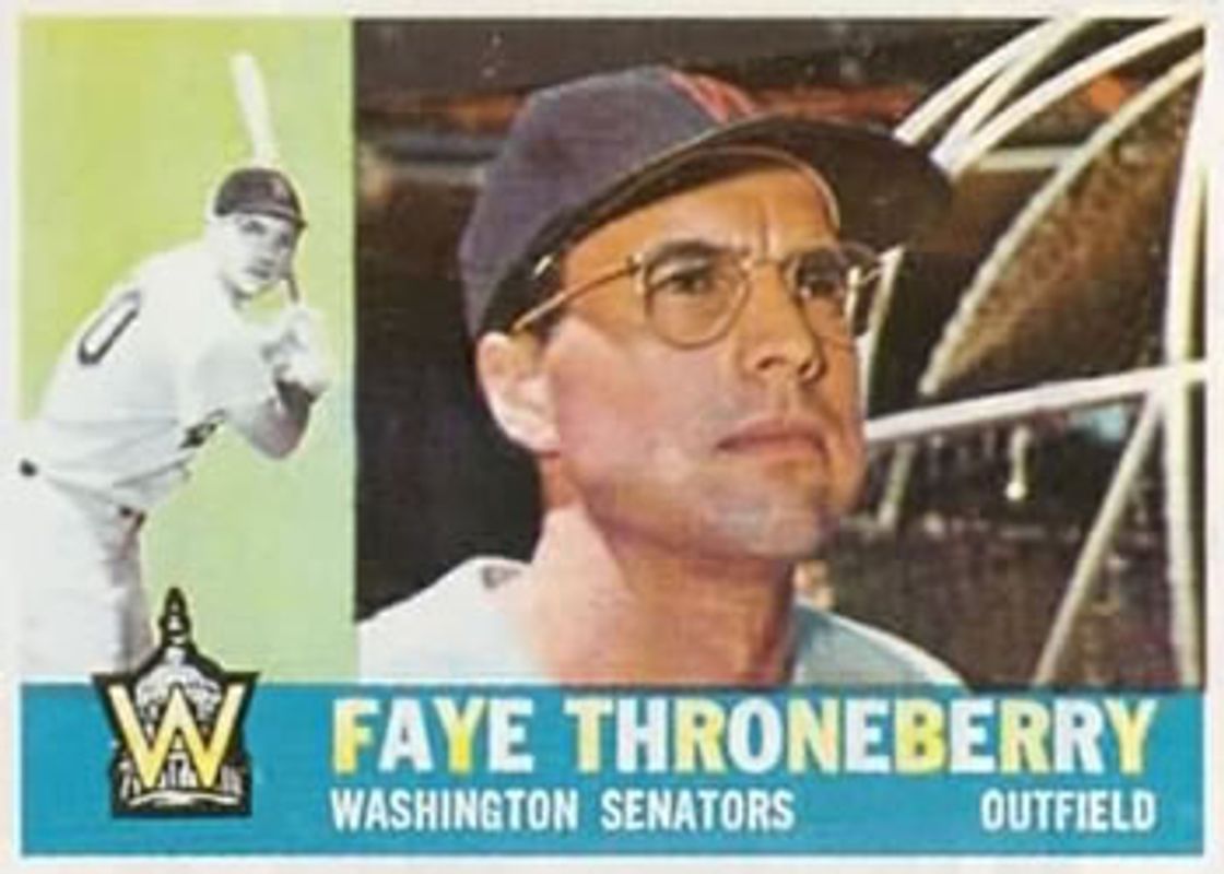 The Faye Throneberry 1960 Topps #9 Base card is 1 of 2 Faye Throneberry's card variations in the 1960 Topps set being tracked by Sports Card Investor, including Proofs.