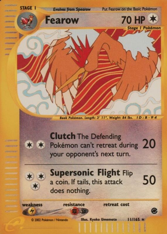 Pokemon FEAROW 11/165 | REVERSE HOLO | Near Mint | Expedition | 2002