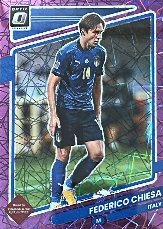 The Federico Chiesa 2021 Donruss #82 Optic - Purple Velocity /99 card in Raw condition has not changed in price in the last 30 days and was last sold for $3.25 .