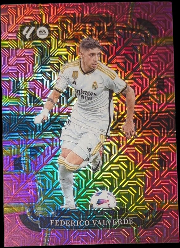 The Federico Valverde 2023 Select La Liga #206 Pink Mojo /115 card is 1 of 41 Federico Valverde's card variations in the 2023 Select La Liga set being tracked by Sports Card Investor, including #206 Base, #66 Base, #66 Checkerboard, #206 Checkerboard, and #66 Green Ice.