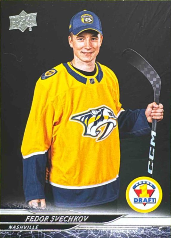 The Fedor Svechkov 2024 Upper Deck Extended Series #746 Base Rookie card is 1 of 61 Fedor Svechkov's card variations in the 2024 Upper Deck Extended Series set being tracked by Sports Card Investor, including #724 Base, #724 Young Guns Base, #724 Clear Cut, #746 Clear Cut, and #724 Outburst.