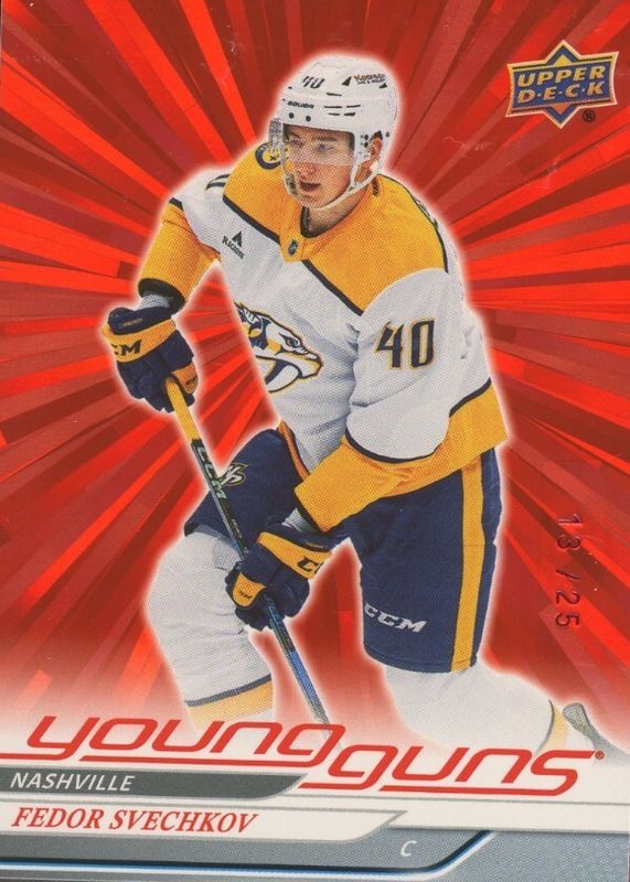 This card is 1 of 61 Fedor Svechkov's card variations in the 2024 Upper Deck Extended Series set being tracked by Sports Card Investor, including #746 Base, #724 Base, #724 Young Guns Base, #724 Clear Cut, and #746 Clear Cut.