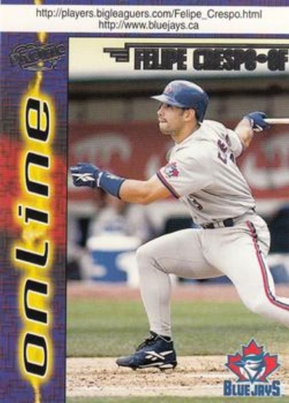 The Felipe Crespo 1998 Pacific Online #756 Base card is 1 of 4 Felipe Crespo's card variations in the 1998 Pacific Online set being tracked by Sports Card Investor, including Base Winners, Red, and Web Cards.
