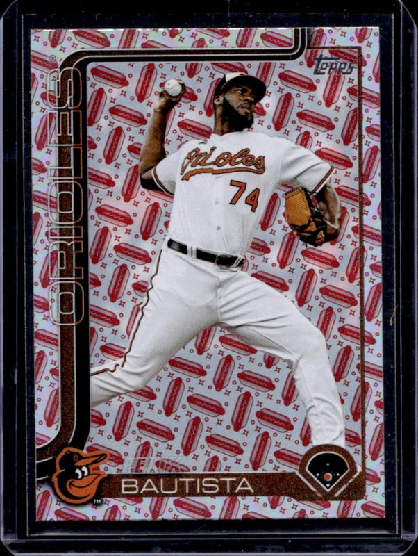 The Felix Bautista 2025 Topps #423 Holiday Hot Dogs /99 card is 1 of 56 Felix Bautista's card variations in the 2025 Topps set being tracked by Sports Card Investor, including Base, Aqua Holo Foil, Diamante Foil, Holo Foil, and Pink Diamante Foil.
