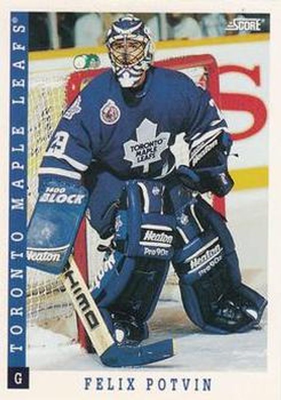 The Felix Potvin 1993 Score #5 Base card is 1 of 3 Felix Potvin's card variations in the 1993 Score set being tracked by Sports Card Investor, including Base, and Samples.
