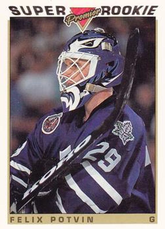The Felix Potvin 1993 Topps Premier #126 Gold card is 1 of 9 Felix Potvin's card variations in the 1993 Topps Premier set being tracked by Sports Card Investor, including #385 Base, #111 Base, #126 Base, #30 Base, and #385 Gold.