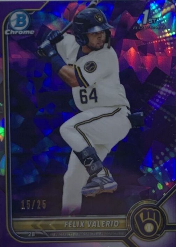 2022 Bowman Chrome Sapphire Felix Valerio Purple Refractor /25 Brewers BCP-128