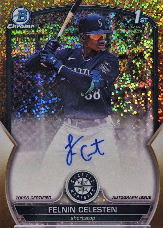 2023 Bowman Chrome FELNIN CELESTEN 1st AUTO GOLD MINI-DIAMOND #d 15/50 Mariners