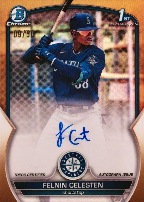 2023 Bowman Chrome FELNIN CELESTEN 1st AUTO GOLD Refractor #d /50 Mariners