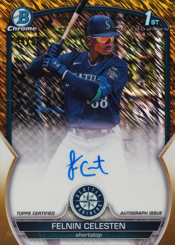 2023 Bowman Chrome 1st FELNIN CELESTEN Gold Shimmer Auto /50 - Seattle Mariners