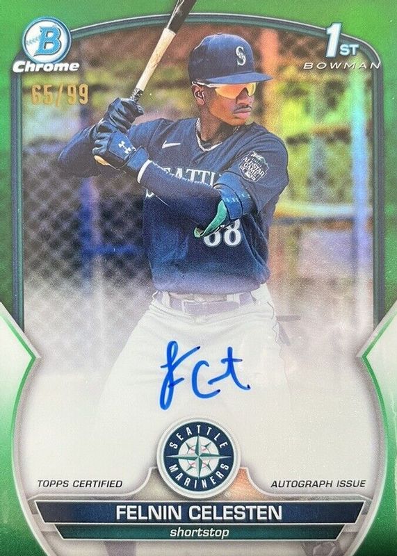 2023 Bowman Chrome Felnin Celesten 1st True Green Refractor Auto /99 Mariners