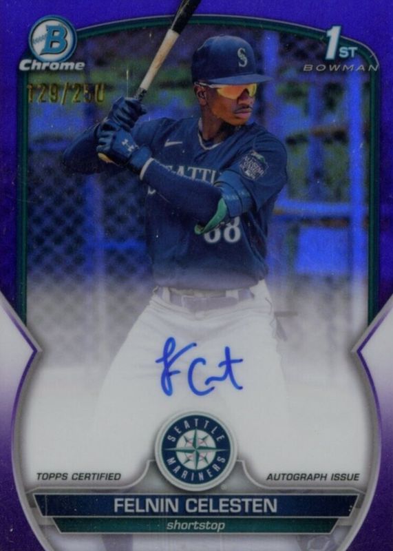 2023 1st Bowman Chrome- Felnin Celesten Auto Purple Refractor /250 Mariners