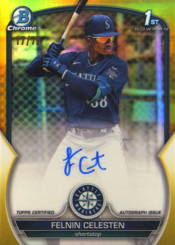 2023 BOWMAN CHROME FELNIN CELESTEN 1st BOWMAN YELLOW AUTO 20/75 SP MINT MARINERS
