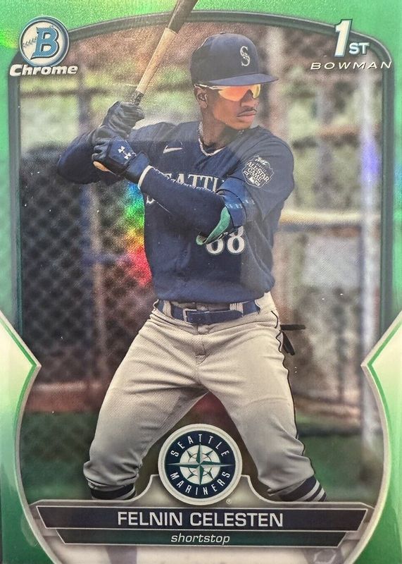 Felnin Celesten 2023 Bowman Chrome 1st Green Refractor /99 Mariners