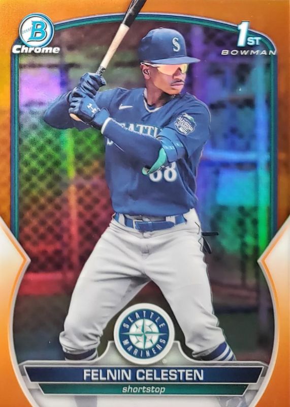 2023 BOWMAN CHROME FELNIN CELESTEN 1ST ORANGE REFRACTOR 07/25 MARINERS
