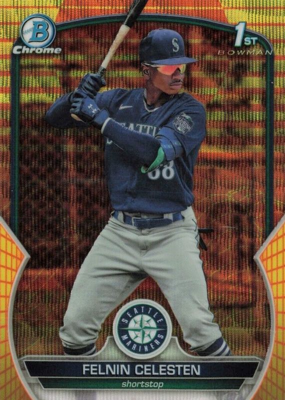 Felnin Celesten 2023 Bowman Chrome #BCP-156 Prospects - Yellow & Orange Vapor Refractor /75 (1st) RAW Price Guide