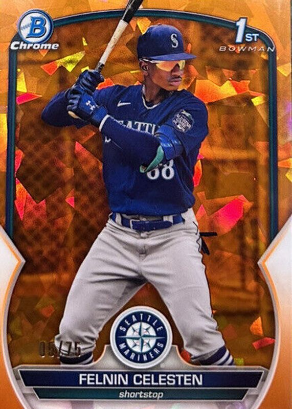 Felnin Celesten 2023 Bowman Chrome Sapphire Orange 1st #70/75 Mariners