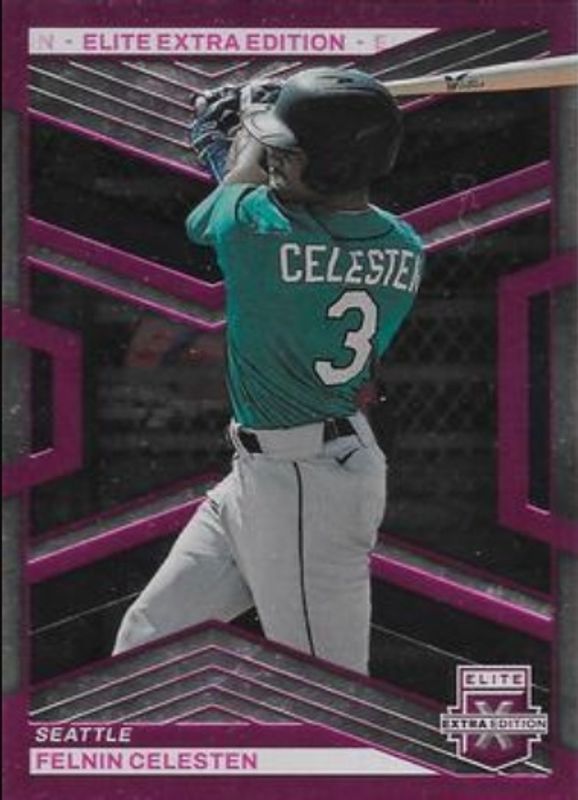 The Felnin Celesten 2023 Elite Extra Edition #113 Pink card is 1 of 41 Felnin Celesten's card variations in the 2023 Elite Extra Edition set being tracked by Sports Card Investor, including Base, Signatures, Status Green /499, Signatures die-cut /399, and Aspirations Blue /349.
