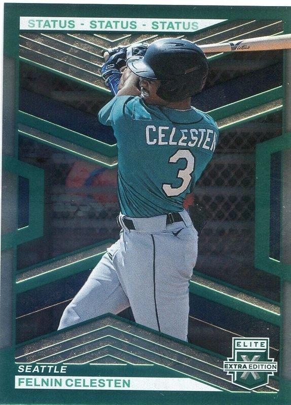 The Felnin Celesten 2023 Elite Extra Edition #113 Status Green /499 card is 1 of 41 Felnin Celesten's card variations in the 2023 Elite Extra Edition set being tracked by Sports Card Investor, including Base, Pink, Signatures, Signatures die-cut /399, and Aspirations Blue /349.