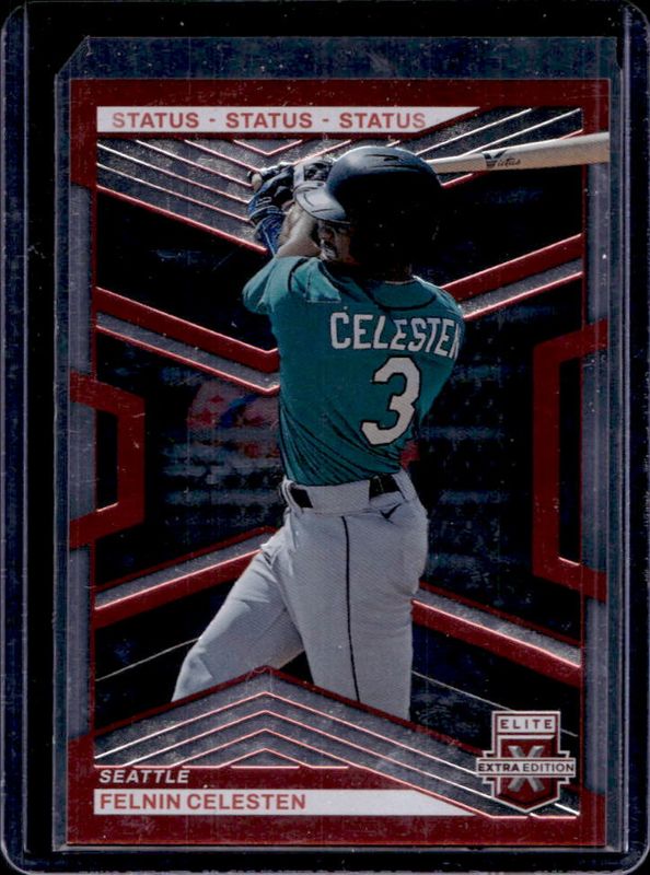 The Felnin Celesten 2023 Elite Extra Edition #113 Status Red /199 card is 1 of 41 Felnin Celesten's card variations in the 2023 Elite Extra Edition set being tracked by Sports Card Investor, including Base, Pink, Signatures, Status Green /499, and Signatures die-cut /399.