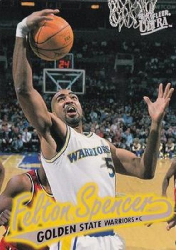 The Felton Spencer 1996 Fleer Ultra #188 Base card is 1 of 3 Felton Spencer's card variations in the 1996 Fleer Ultra set being tracked by Sports Card Investor, including Gold Medallion, and Platinum Medallion.