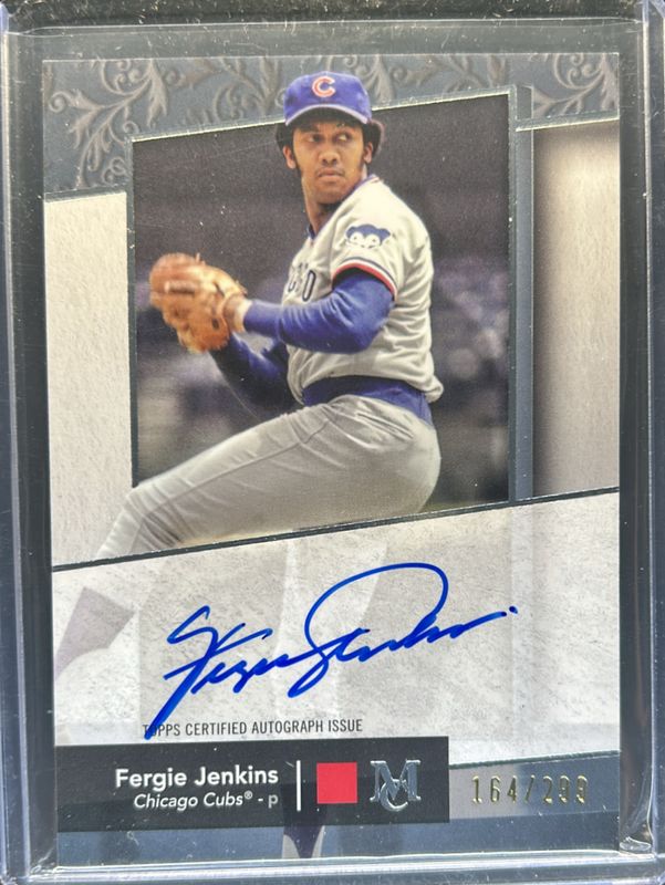 The Fergie Jenkins 2024 Topps Museum Collection #AA-FJ Archival Autographs /299 card is 1 of 10 Fergie Jenkins' card variations in the 2024 Topps Museum Collection set being tracked by Sports Card Investor, including Private Viewing, Archival Autographs - Pink Sapphire /99, Archival Autographs - Copper /50, Private Viewing - Artist Proof /50, and Archival Autographs - Gold /25.