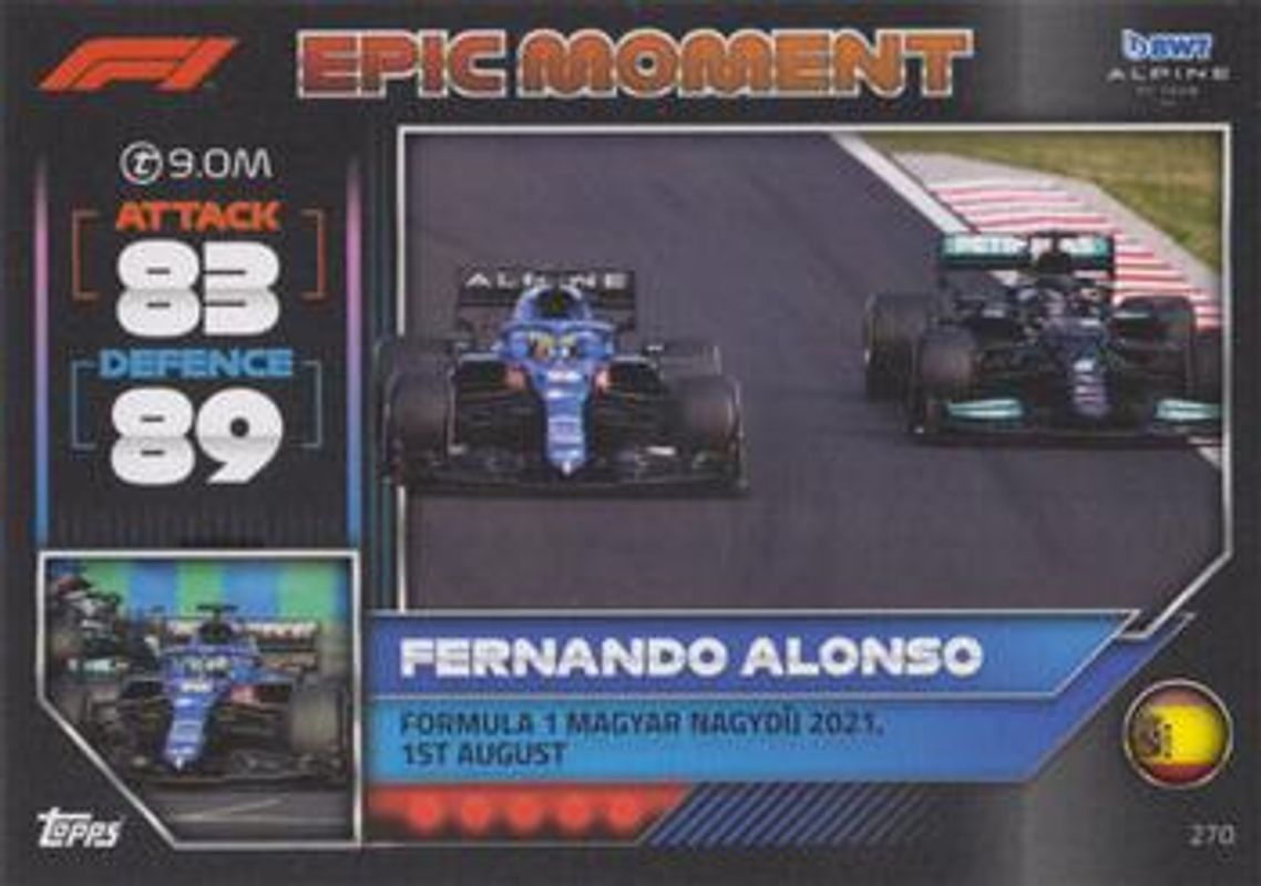 Fernando Alonso 2022 Topps Turbo Attax Formula 1 #270 Base RAW Price Guide