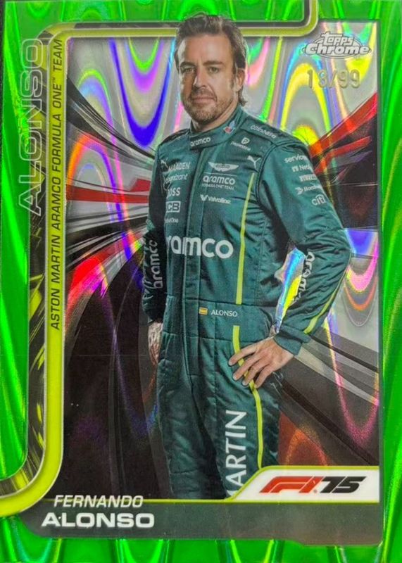 Fernando Alonso 2025 Topps Chrome Formula 1 #9 Green RayWave Refractor /99 RAW Price Guide