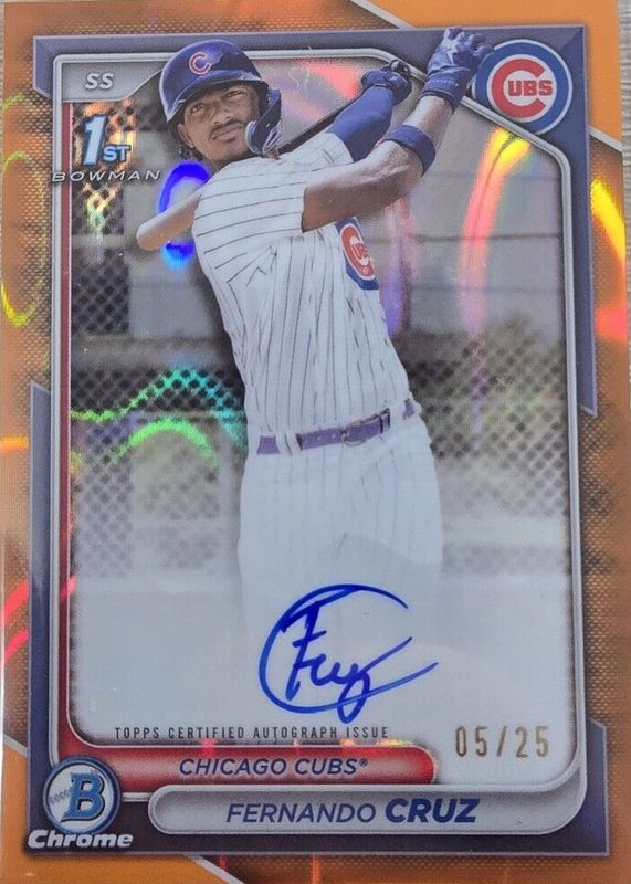Fernando Cruz (Cubs) 2024 Bowman Chrome #CPA-FC Prospect Auto - Orange Lava Refractor /25 (1st) RAW Price Guide