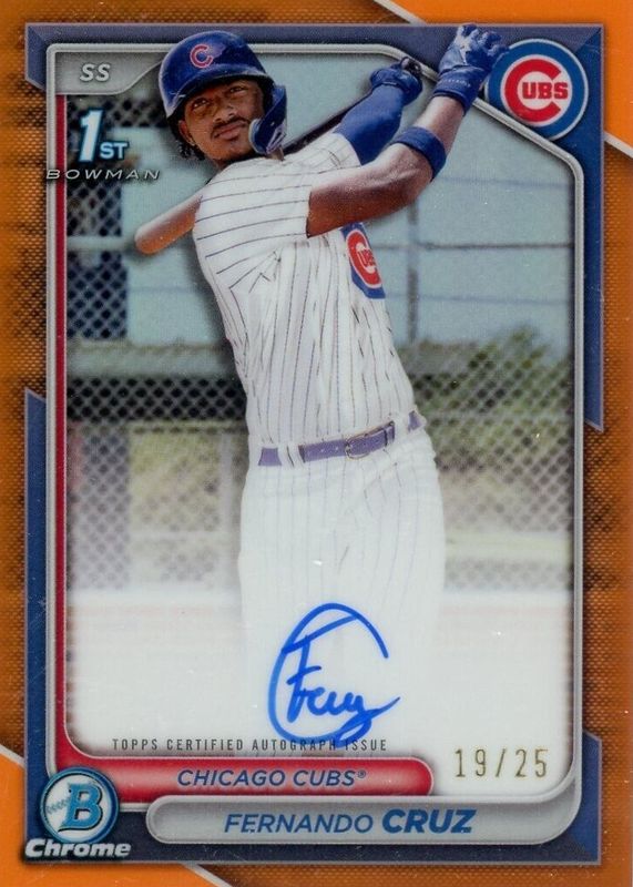 2024 Bowman Chrome 1st FERNANDO CRUZ Prospect Orange Refractor Auto /25 - Cubs
