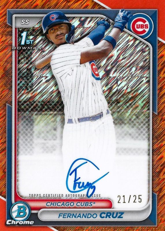 Recent Sales of Fernando Cruz (Cubs) 2024 Bowman Chrome #CPA-FC Prospect Auto - Orange Shimmer Refractor /25 (1st) Raw